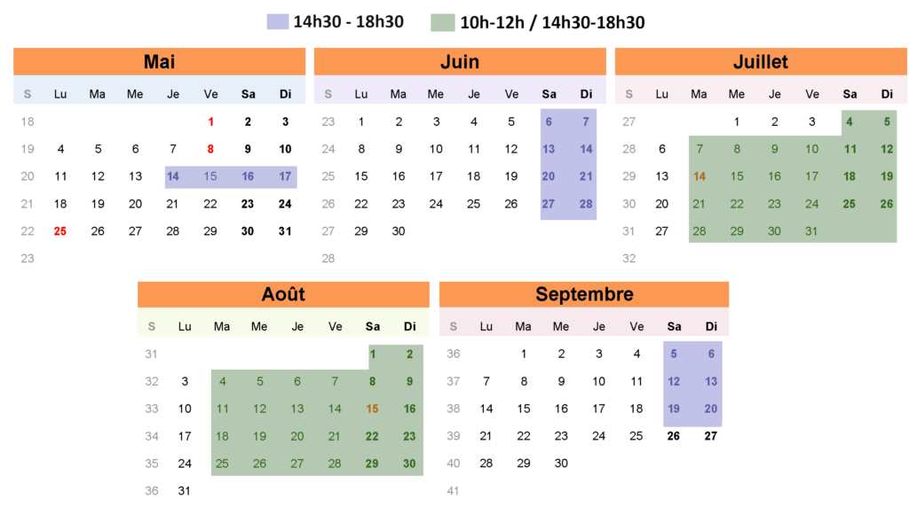 Nos horaires 2026 :